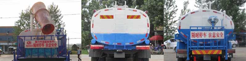 | 整車備注: | 選裝不帶灑水平臺及選裝帶噴霧機組。運輸介質:水,密度:1000千克/立方米,罐體有效容積9.45立方米,帶灑水平臺時,罐體外形尺寸(長×寬×高)(mm):4200×2000×1340。不帶灑水平臺時,罐體外形尺寸(長×寬×高)(mm)4500×1900×1300;帶噴霧機組時,罐體外形尺寸(長×寬×高)(mm)為3600×2100×1400; 側防護及后下部防護裝置均采用Q235A材質,均采用焊接連接,后部防護斷面尺寸(mm):150×50,后部防護離地高度:450(mm);ABS系統(tǒng)生產廠家:襄陽東風隆誠機械有限責任公司,型號 ;ABS/ASR-24V-4S/4M;隨底盤選裝駕駛室。 | ||
