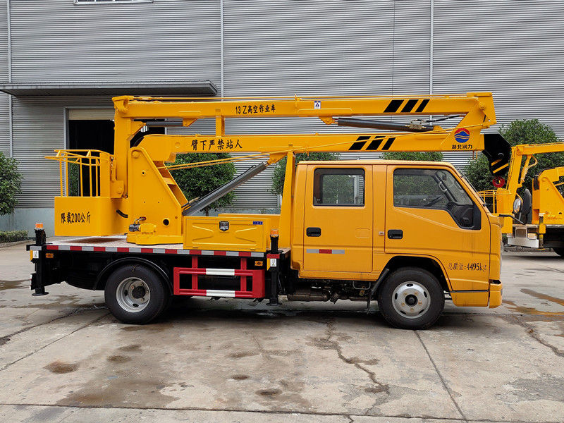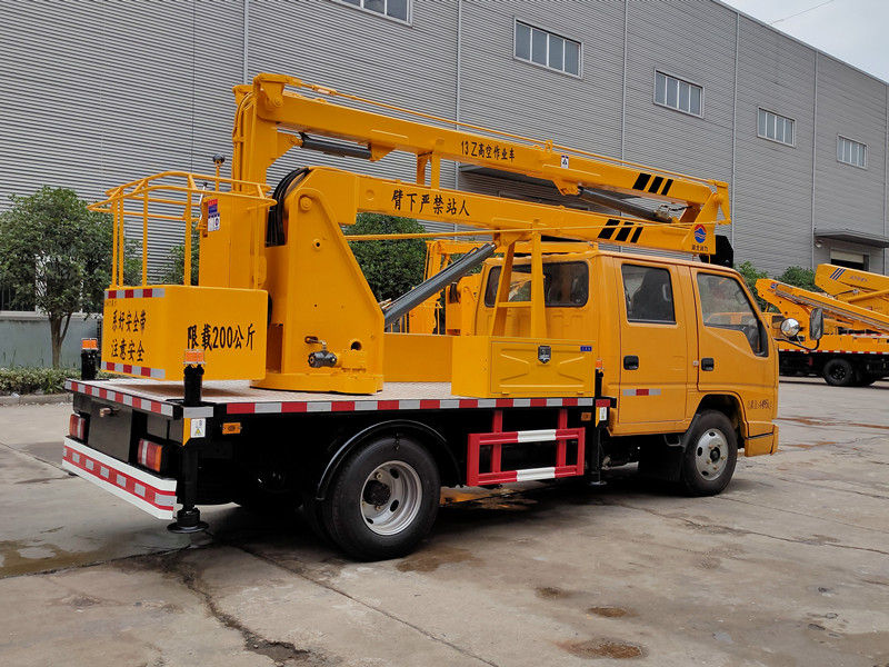 江鈴13米藍(lán)牌高空作業(yè)車整車配置:江鈴(新款)雙排工程黃駕駛室,軸距3360mm,江鈴115馬力國(guó)六發(fā)動(dòng)機(jī),油剎,五檔變速箱,7.00R16鋼絲胎,帶ABS、方向助力、2噸前橋、3.5噸后橋,空調(diào)。(該車上下均可以操作,吊籃帶操作)